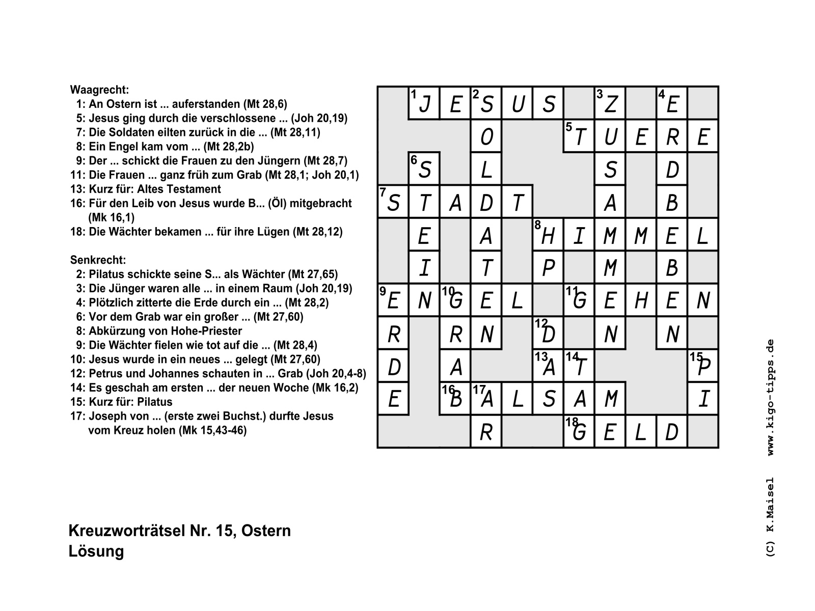 Speziell zu Ostern gibt's ein kindgerechtes Kreuzworträtsel im Kontext der Osterbegebenheit mit überschaubarer Größe.